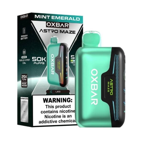If you are looking for a crisp and cool experience that stays fresh from the first puff to the very last, the Mint Emerald Oxbar Astro Maze 50K is a fantastic choice. This device is designed for people who want a reliable, high-capacity vape that does not sacrifice flavor or technology. It brings together a clean minty taste with a massive battery and a smart screen, making it one of the most advanced disposables available today.